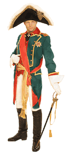 Генеральский синий мундир, времён Екатерины II, расшитый золотом и дополненный треуголкой и ботфортами великолепно сидит на мужской фигуре. Такой карнавальный костюм вызовет восхищение у всех участников костюмированного бала. Если вы в детстве мечтали стать капитаном, то вас наверняка, заинтересует парадный белый мундир. Великолепный морской китель позволит хотя бы на один вечер осуществить детскую мечту и преобразит вас в элегантного и строгого капитана. Парадный мундир Бонапарта даёт возможность почувствовать себя императором Франции и главнокомандующим наполеоновских войн. Ну а если вы стремитесь завоевать внимание всех женщин, присутствующих на празднике, вам просто необходим карнавальный костюм гусара. Гусарский мундир напрокат, выдаётся вместе комплектом аксессуаров – шнурами, кивером, ташкой и так далее, что позволяет создать полностью завершённый образ.