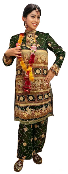 В костюм входит: Платье-панджаби, шаровары, палантин, украшения.