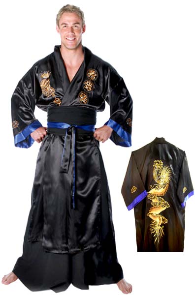 В костюм входит: халат с драконом, пояс широкий, повязка на голову.